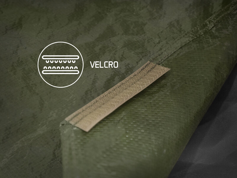 Il bivvy viene fornito con un pavimento base che può essere fissato alle pareti tramite velcro. È incluso anche un pratico borsone da trasporto con manici resistenti.