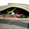SHERPA ha due scomparti principali che possono contenere con facilità 2 canne telescopiche con mulinelli. Include anche un terzo scomparto "mezzo", che può ospitare una canna telescopica senza mulinello o vari accessori da pesca. Gli scomparti sono separati da divisori.