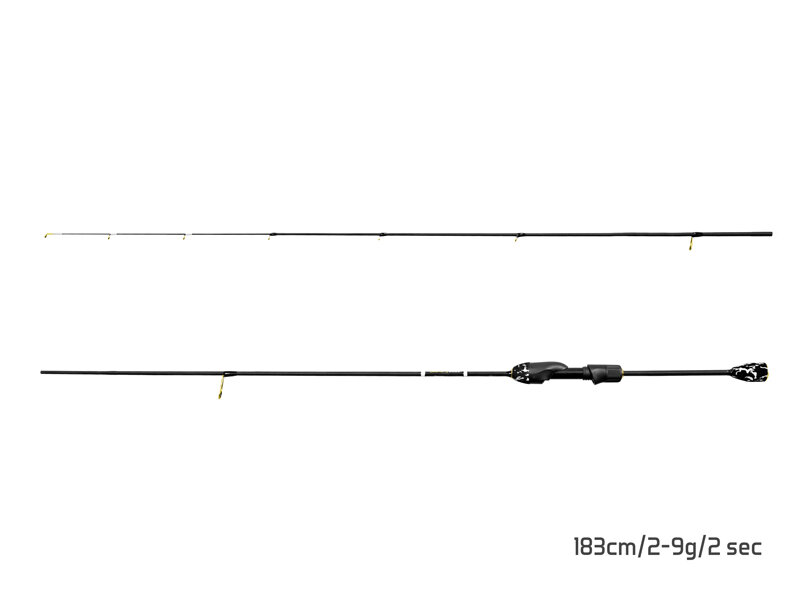 La base della canna è un blank opaco 24T con una superficie finemente strutturata, che dona alla canna sia resistenza che sensibilità – essenziale per la pesca ultraleggera. La rigidità e la velocità del blank sono aumentate grazie all’innesto di una punta in carbonio con legatura bianca sugli ultimi anelli, che consente non solo di sentire, ma anche di vedere ogni attacco del predatore. Il blank ben bilanciato consente lanci precisi sul punto desiderato e un eccellente piacere nel recupero.