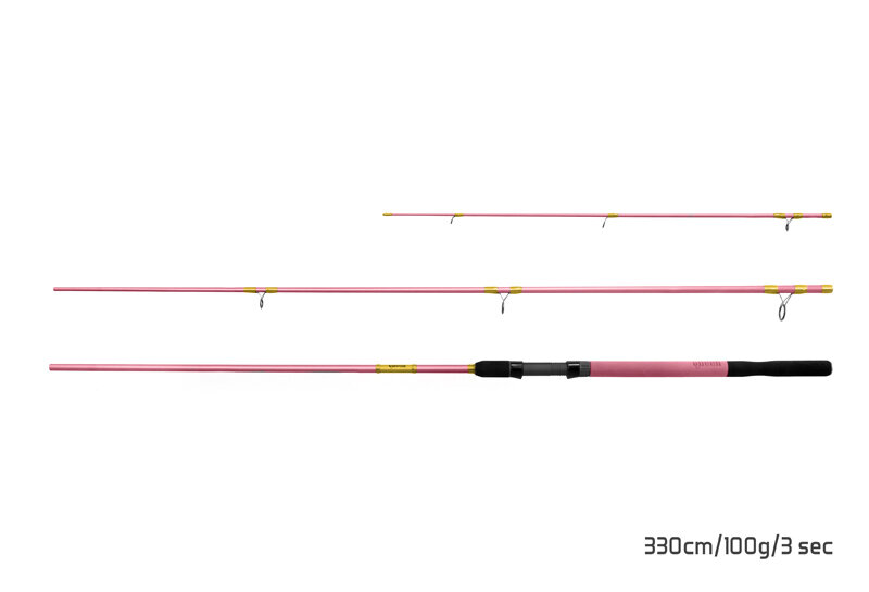 La base è un fusto sottile collaudato con azione parabolica e ottime proprietà meccaniche. L'intero manico è rivestito con schiuma EVA, molto piacevole al tatto anche durante le fredde giornate invernali. È progettata con una combinazione di colori rosa e nero, che crea un elemento visivamente accattivante. Il manico è ergonomicamente rastremato in un punto ed è terminato con un elegante elemento in alluminio rosa con logo. Grazie alle punte sensibili incluse, non perderai nemmeno il più piccolo morso di piccoli pesci. Il fusto è dotato di anelli SIC di alta qualità e leggeri, che non creano attrito o resistenza superflui al passaggio della lenza. La canna è fornita di serie con una punta in carbonio (Heavy) e due punte CarbonGlass (Light, Medium).