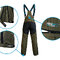 Uno dei principali vantaggi dei pantaloni è la vita rialzata nella zona della schiena, fornendo protezione ottimale alla parte bassa della schiena. La zona posteriore e le ginocchia sono rinforzate con tessuti neri per protezione dall'usura, tipica delle parti soggette a maggiore stress. Le bretelle elastiche con chiusura a clip assicurano che i pantaloni siano ben aderenti e non scendano. La chiusura in vita è fatta di una robusta cerniera e due bottoni in metallo, inclusi passanti attorno per l'uso di una cintura. Nella parte inferiore, i pantaloni possono essere regolati con una cerniera coperta e una fascetta regolabile con velcro.