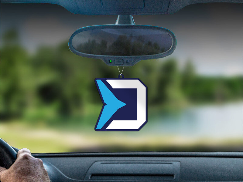 Deodorante per ambiente con il logo della marca Delphin, nel classico design blu e bianco. Se la pesca è il tuo hobby e sei anche un fan della marca Delphin, questa fragranza troverà sicuramente un posto nella tua auto.